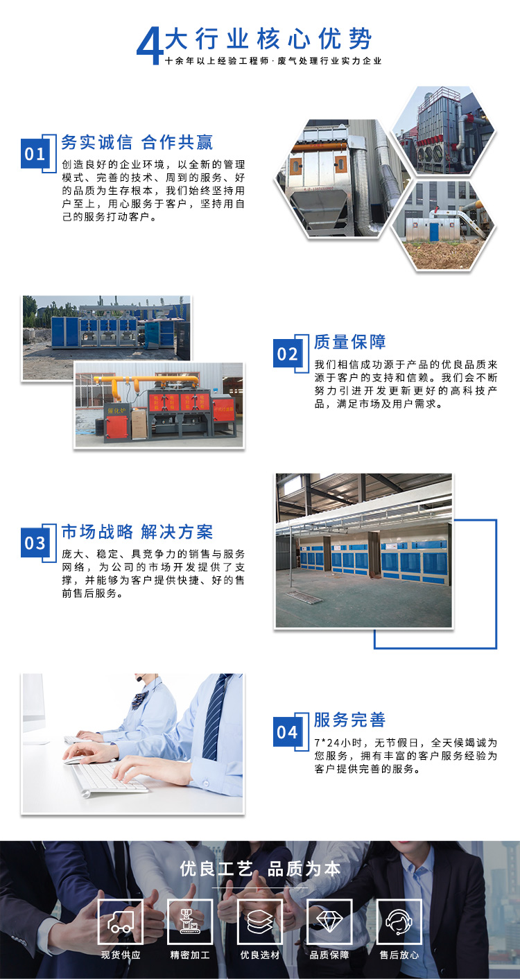 公司以其獨(dú)特的技術(shù)和專(zhuān)業(yè)化、成套化先進(jìn)設(shè)備在行業(yè)內(nèi)樹(shù)立了一面鮮明旗幟,打造出眾多技術(shù)含量高、質(zhì)量過(guò)硬、效果優(yōu)異的示范工程。設(shè)備廣泛適用于各類(lèi)VOCs有機(jī)廢氣、橡膠及PVC廢氣凈化、噴涂廢氣凈化、機(jī)械加工、金屬加工、建材、酒店餐飲及醫(yī)院學(xué)校等公共事業(yè)區(qū)域的廢氣和油煙治理。
